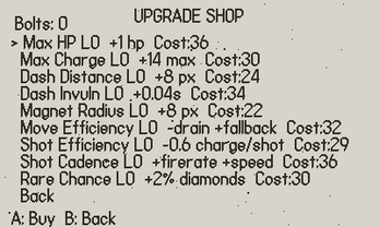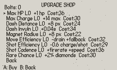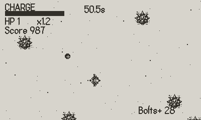Collect pickups, build score multipliers, and push your luck through each run. At the 60-second mark, a boss arrives. Beat it and choose whether to cash out your bolts and upgrade or risk everything on the next level.